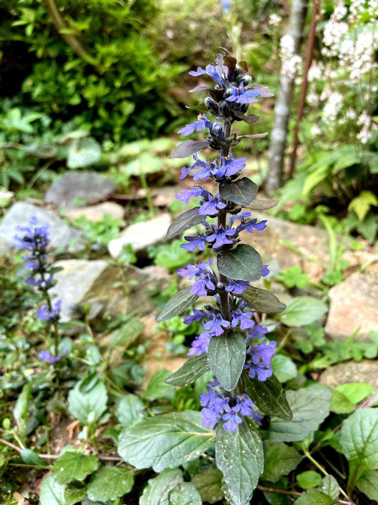 ウチのアジュガはやっぱり青いお花が咲き始めました