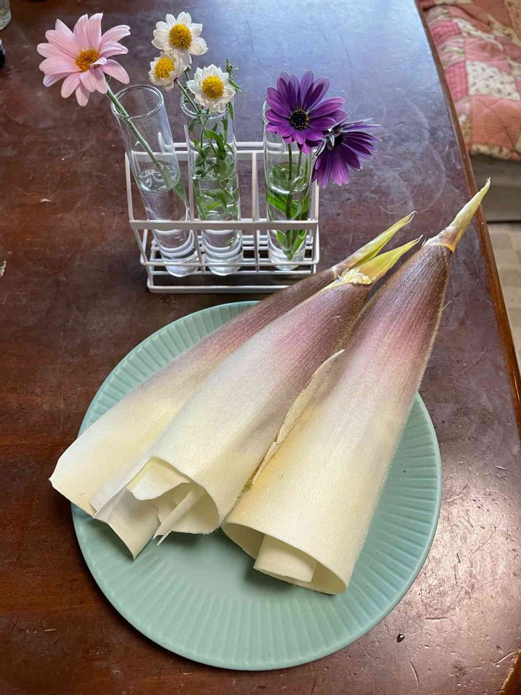 タケノコを茹でたあと、遊んでる私たち近所の子に配ってくれて、酸っぱ美味しかった😊
