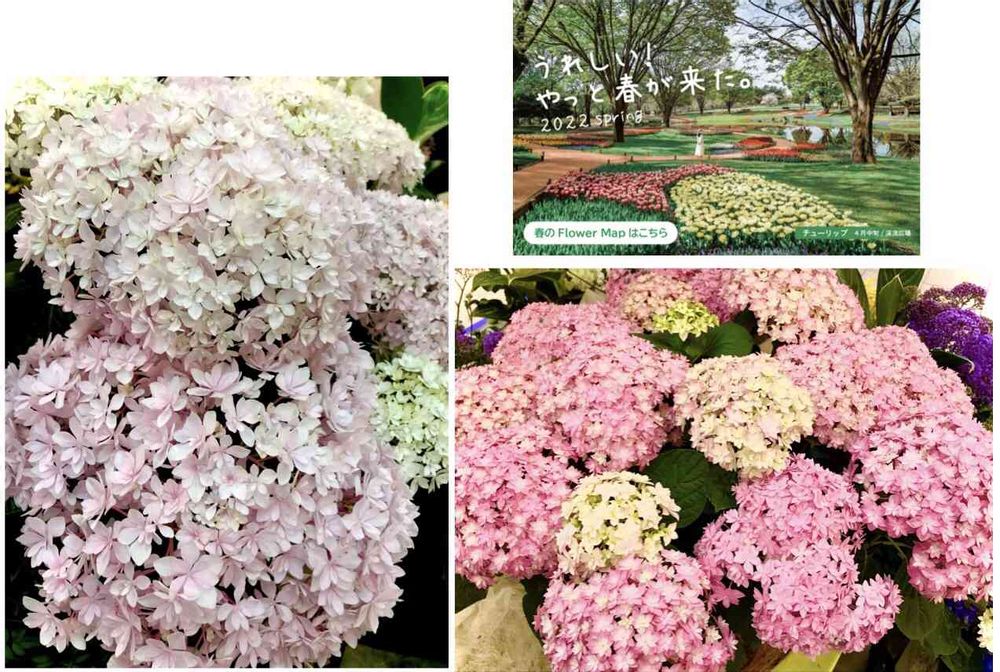 最寄駅の一つ、立川駅では昭和記念公園の案内と花たちが飾られ期待を高める