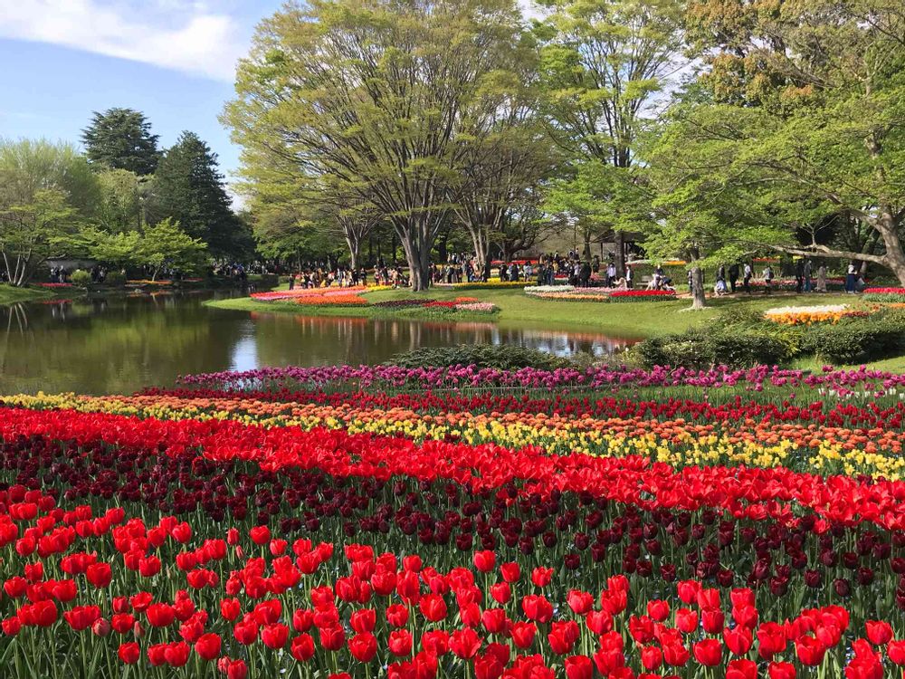 東京/立川市の昭和記念公園のチューリップは見頃ですごい。