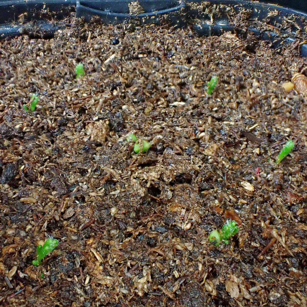 ムカゴ蒔いて1週間、少しづつ出てきました(/ ・ω・)/