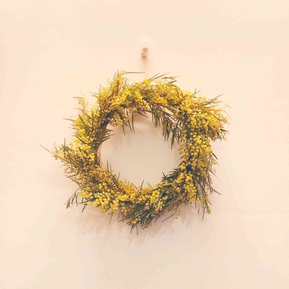 ミモザのリースが作りたくて、398円のポット苗から三年目でやっと作れました(笑)
