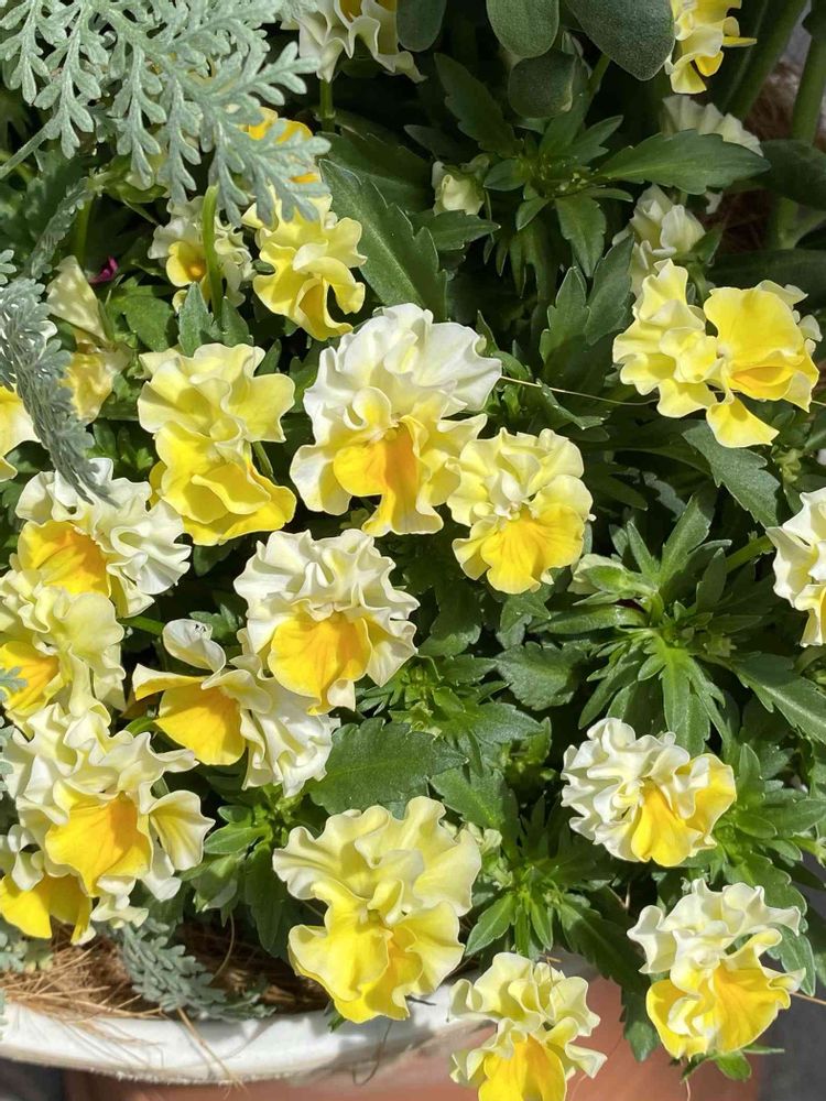 今が盛りのフリル咲きビオラ モココさん。