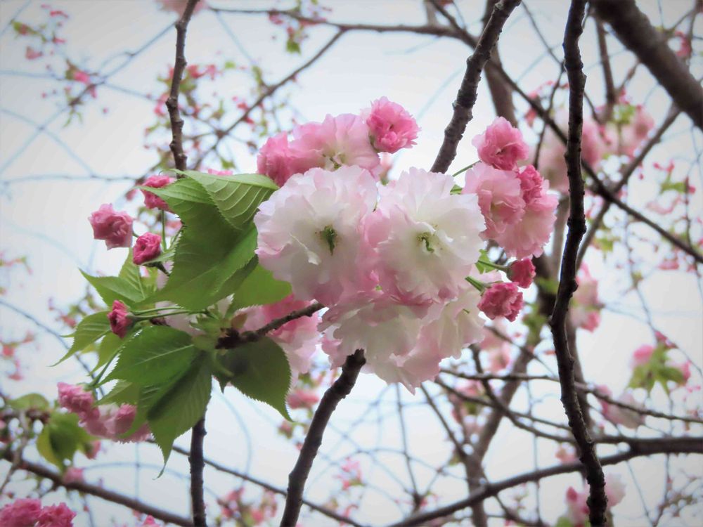 花弁に白とピンクが混ざったとても綺麗な「ヤエザクラ」出会えました。 パチリ