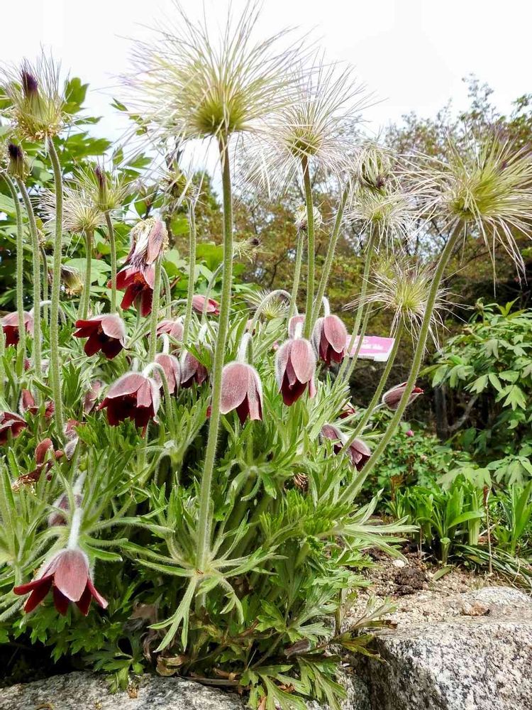 花の文化園の花壇で初めて見た不思議な花🤎オキナグサ🤎