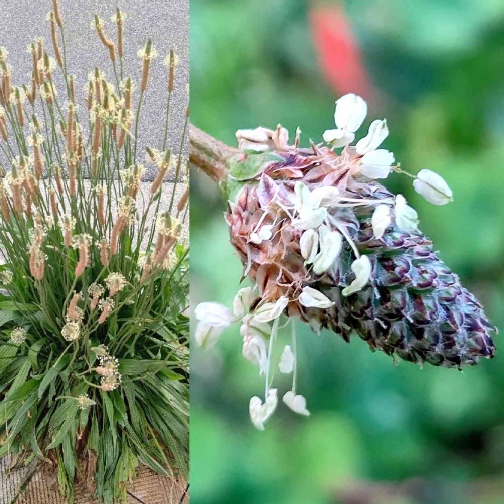 ⇐去年投稿した、道路の隙間に咲く、ヘラオオバコ。