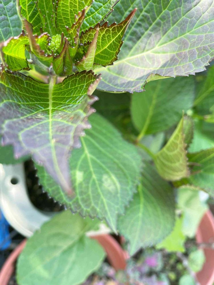 令和4年4月17日(日)晴れ☀️ 🎵👀見つけた〜^_^ おはよーございます 小さい庭で朝の見廻りしています 鉢植え🪴紫陽花ひな祭りにつぼみが有りました😊その側には前に育てて花を咲かせたホウレンソウの零れ種があったようで🌱知りながら抜かずにいました 柔らかそうに育ちました😆