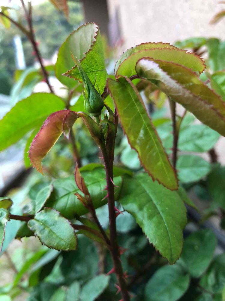 去年の6月にお店のスタッフから勧められてお迎えした、アレゴリー。夏から晩秋にかけて、絶え間なく咲き続けてくれた優等生が、蕾をつけてました。早くも咲く気満々(о´∀`о)