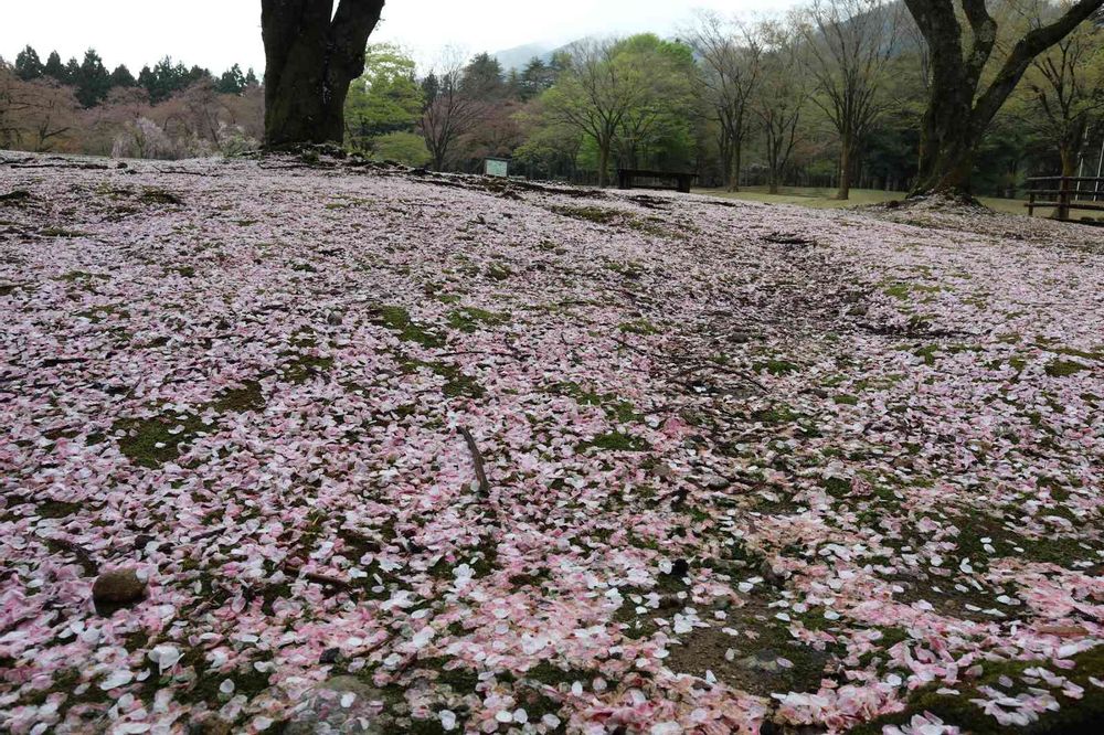 東北方面は桜満開のなか、北陸は花筏ならぬ芝生一面の🌸吹雪