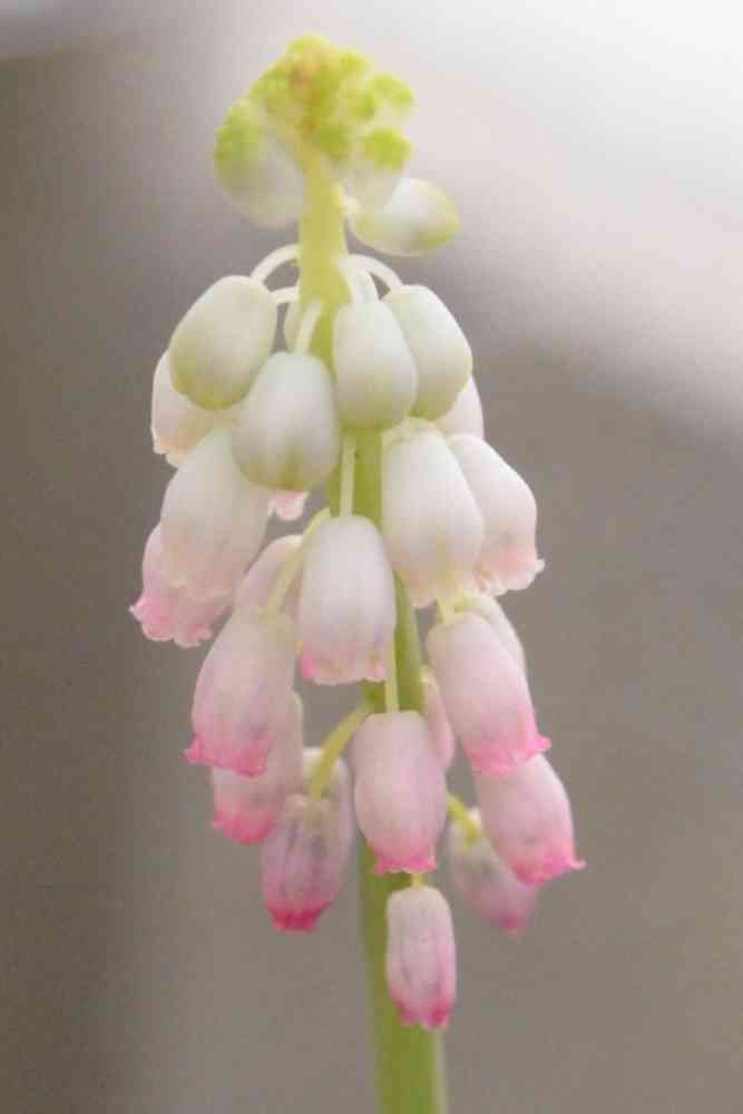 我が家にいるムスカリさん、白なのですが、同じように咲き進むと薄くピンクに色付いています。