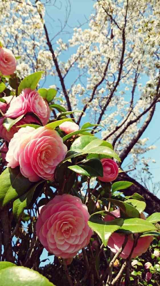 椿と葉桜のコラボレーション🌸(*^^*)🌸