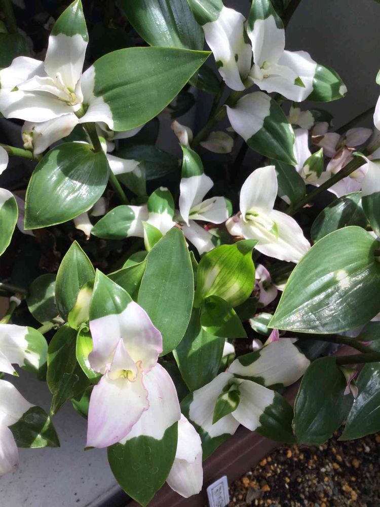 今年は白い?下の方はピンクっぽい葉っぱもあるけれど…挿し芽だから😅