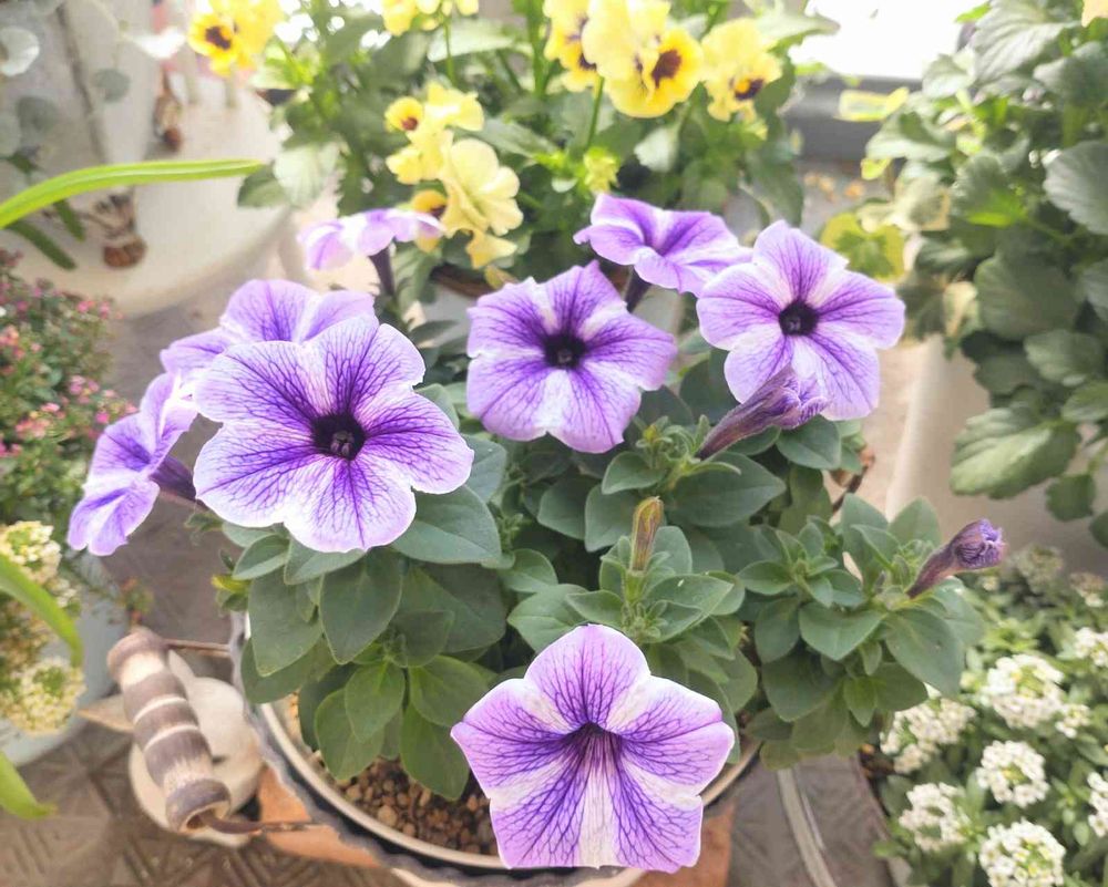 冬越しペチュニアの藤色小町ちゃん、次々に開花しています😊