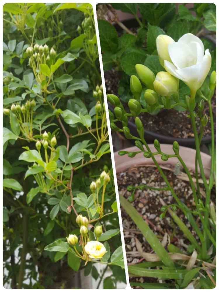 右は、フリージア。赤いものも追って咲きそうです。😊🎶