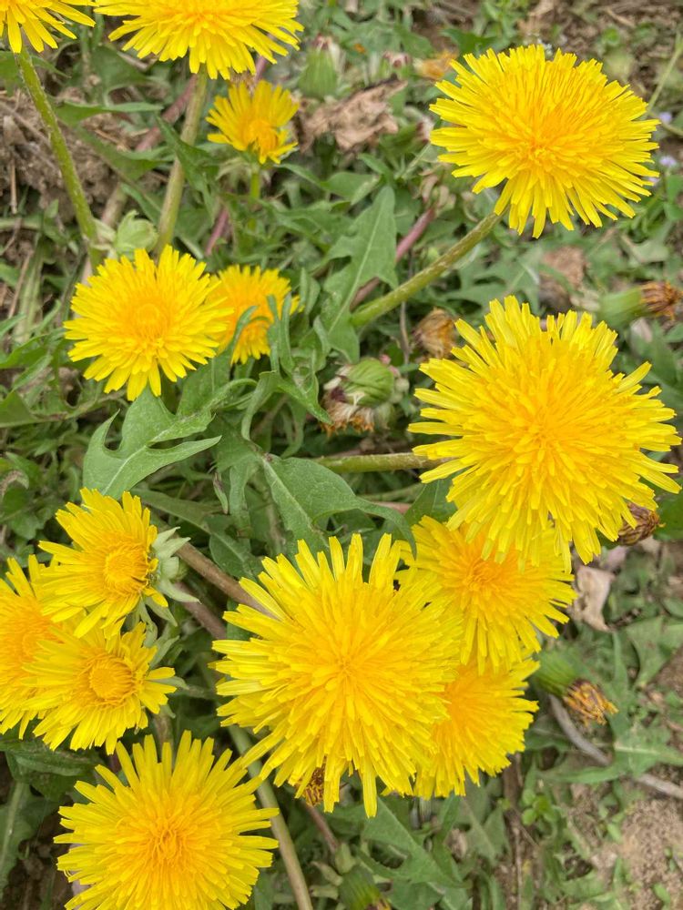 畑にタンポポがいっぱい🌼🌼🌼