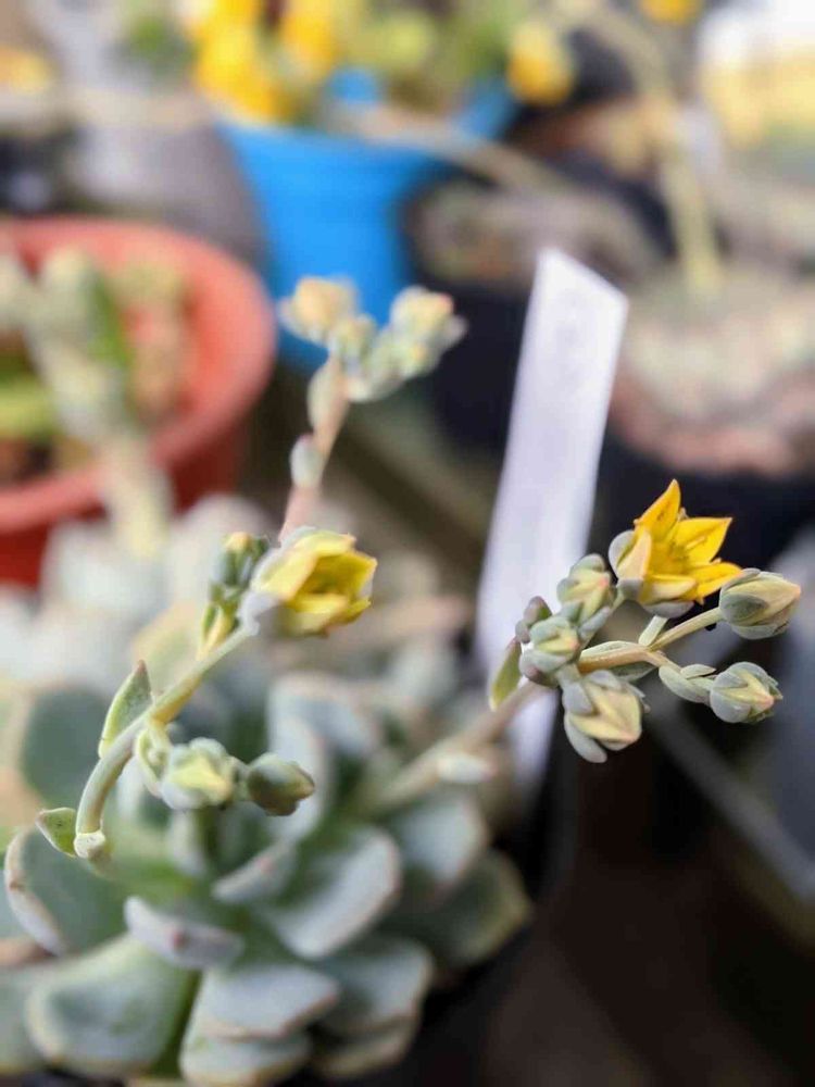 アズールブルー🪴ベランダで冬越しして❄黄色い花🌼が咲きました