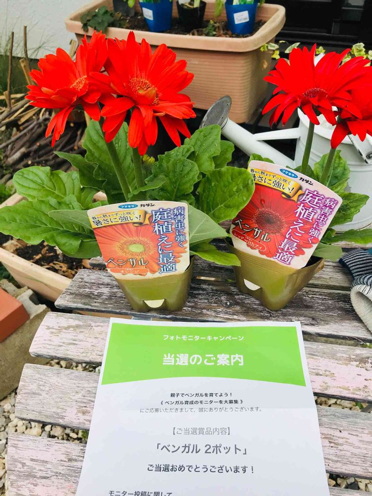 ベンガルという大輪のガーベラとのこと、開花時期が4月から11月でとても長いので、長く楽しめて、嬉しいです😆