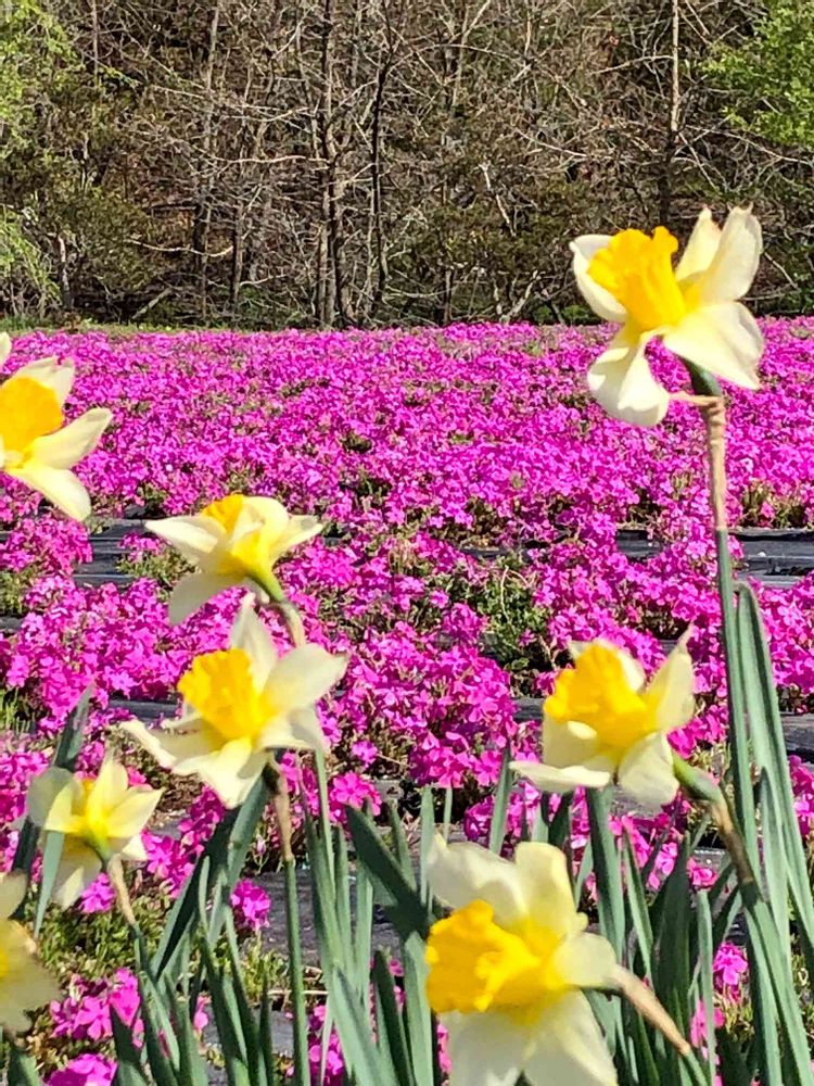 水仙が終わってしまったところだったので‥芝桜と一緒の姿に微笑んでしまいました♡
