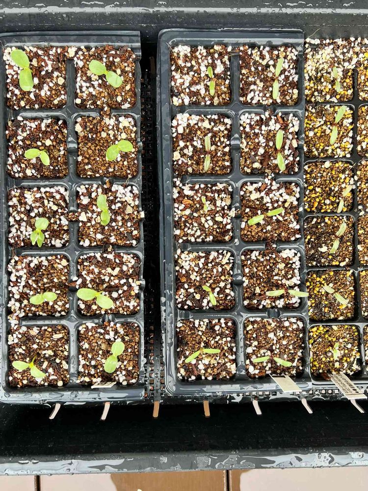 どちらも去年買った種の余りだからどうかなーと思いきや発芽率100%!😳