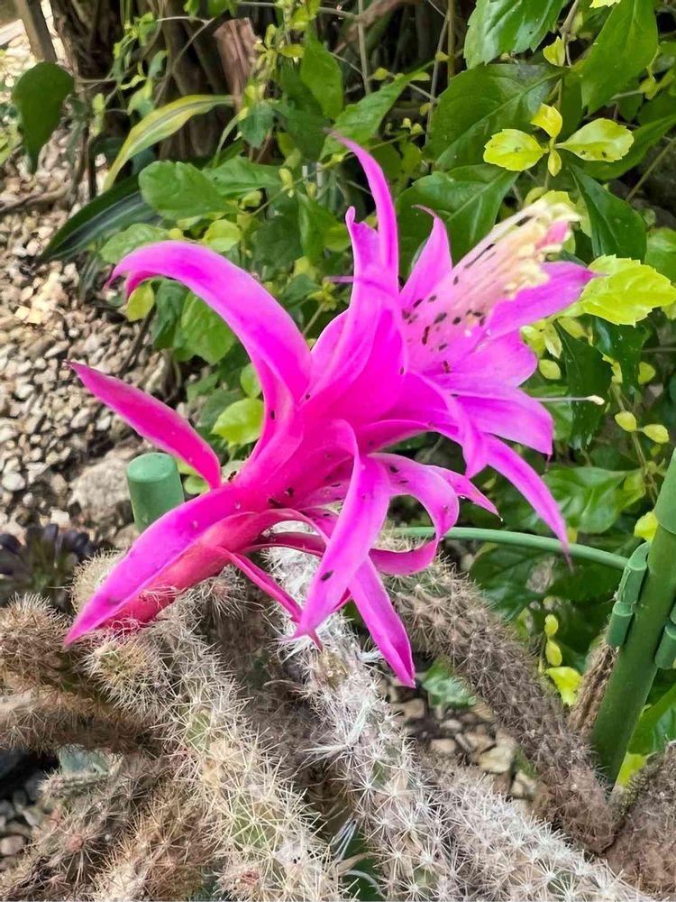 昨年夏、『ホラーな多肉植物』として展示されてたものにお花🌸が咲いてました👏