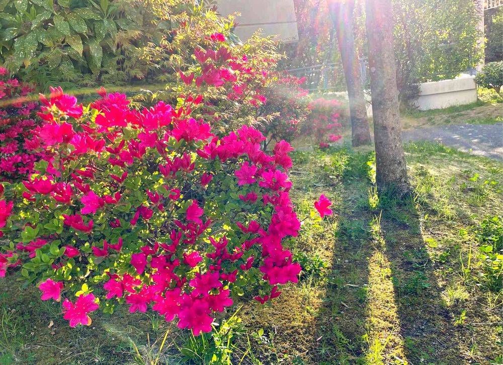 玄関先を出て、まず目に飛び込んだ花の色が、とても印象的でした^ ^