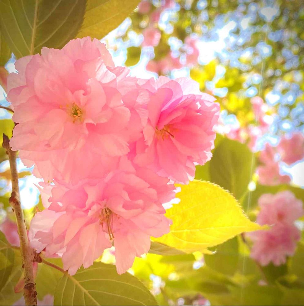 八重サクラ🌸綺麗ですね。後ろの黄色い葉っぱがより素敵に見せてくれているように思います。🐸