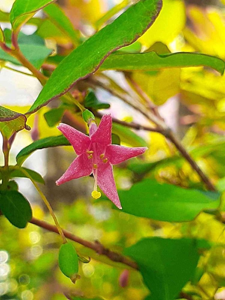 『ウグイスカグラ』という雅な名の由来には諸説あるようだけど、「ウグイス」がこの木の枝を渡り歩く姿から「神楽舞う」としたとも言われています