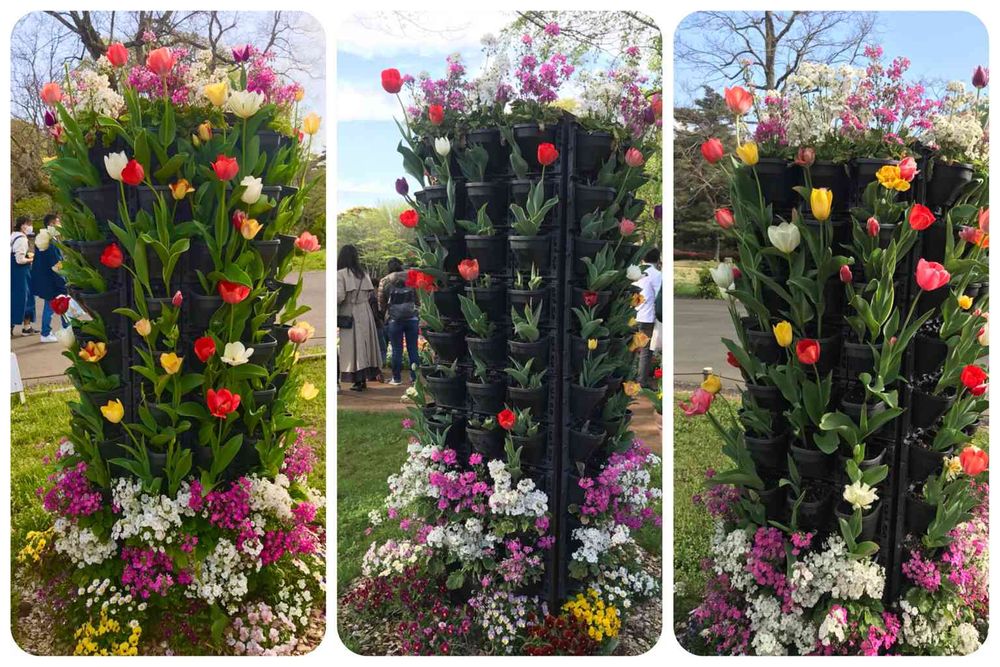 東京 昭和記念公園 チューリップガーデンのチューリップの展示の仕方もいろいろ工夫している