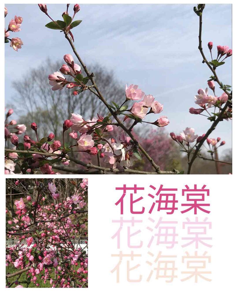 花海棠の棠は梨で海を渡った(中国から来た)ナシ(ヤマナシともリンゴの仲間とも書かれています)で花が美しいので花海棠と言うそうです。