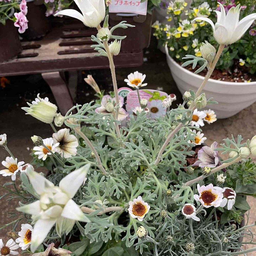 シンプルだけどフランネルフラワーが引き立つ寄せ植えになりました😁