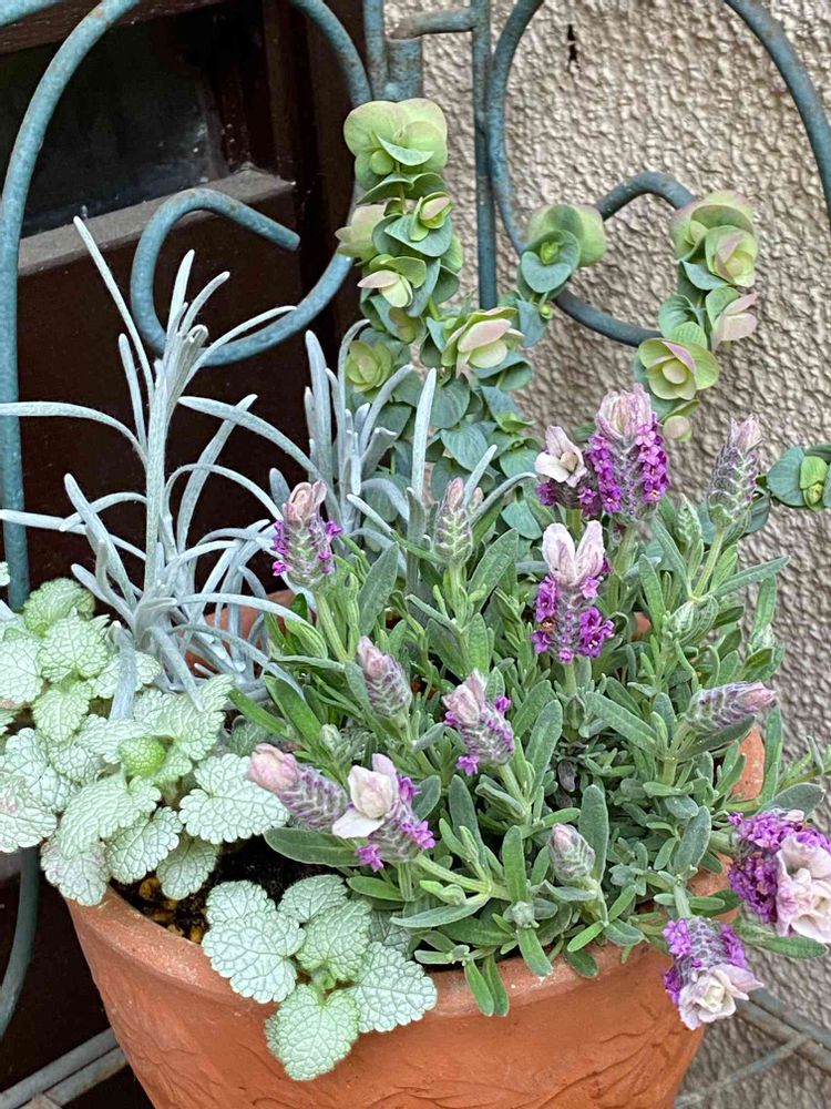 ラベンダーが気に入ったのですがひと苗しかなくて💦余りもの植物達と合わせてみました🤗❣️