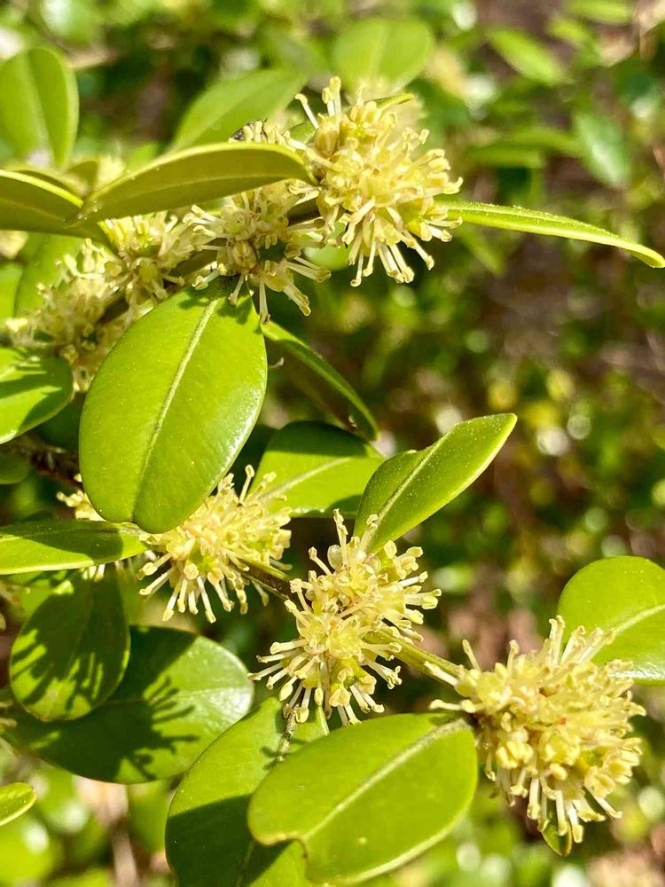 2月13日に投稿したボックスウッド(セイヨウツゲ)のお花が咲いた🥰