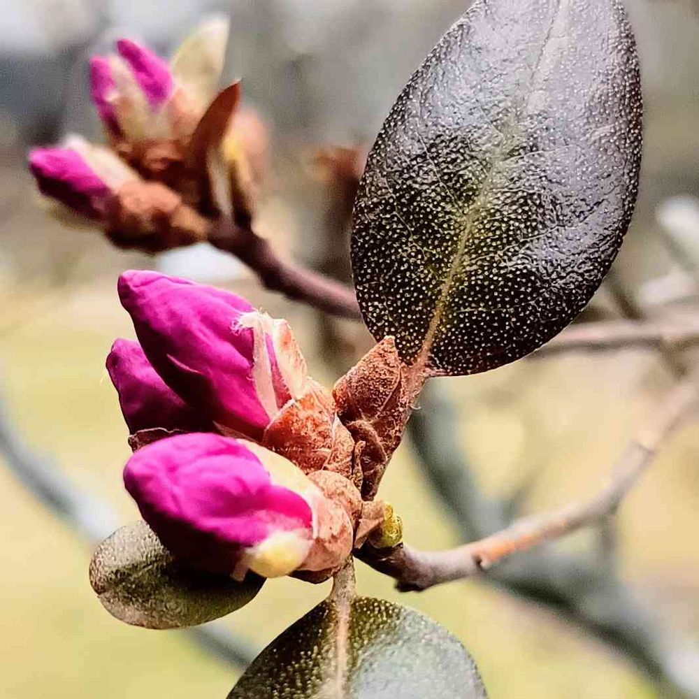 エゾムラサキツツジには越冬する葉と落葉する葉があって花は越冬した葉の脇に咲くそうです🤔冬の間頑張ったご褒美かな~🤭ふふふ