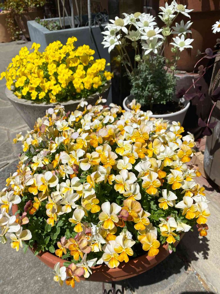 このビオラは、種から出来たんで、沢山あり、鉢も大きいですが、6株も植えたので、誰でもこの数だと、もりもりになりますよ😊