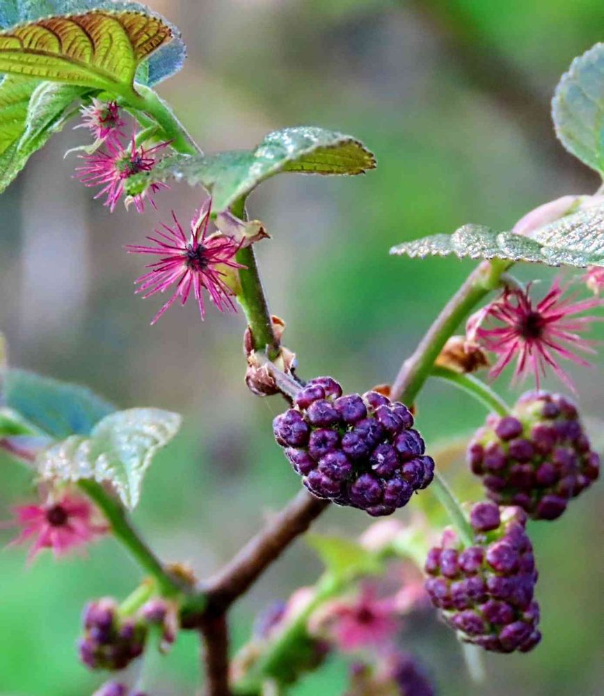 暗紫色の実と濃いピンク色のお花のコラボが、ちょっとミステリアスでユニークな感じですネ😋