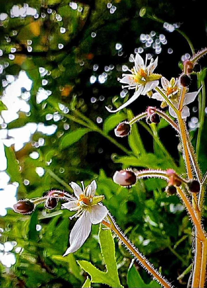 良いアングルの花写真ですね!昔々、茅葺き屋根の自宅裏には井戸端があり、周囲にいっぱいユキノシタが群生していました。