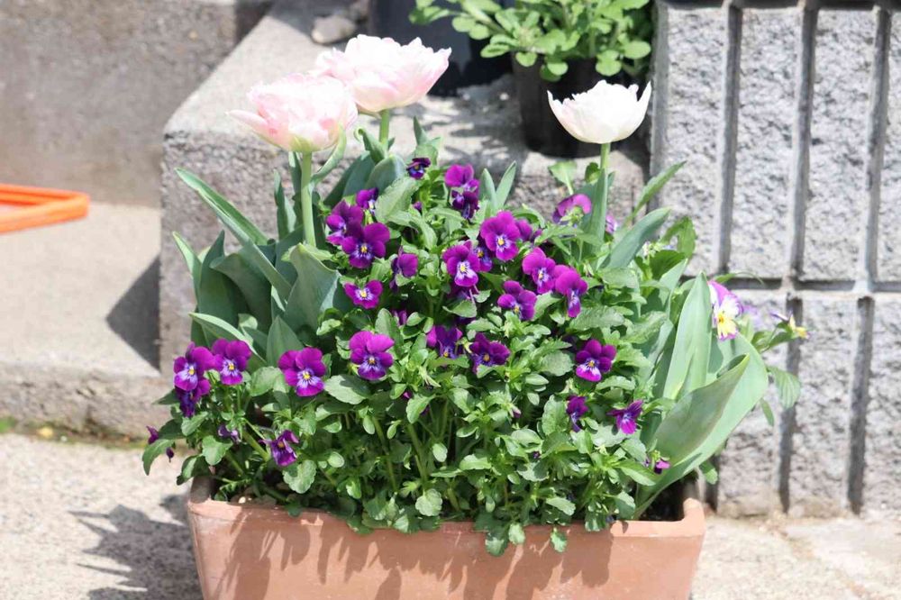 SNOOPYさんの小さな庭,ビオラ F1ビビ パープル,チューリップ 八重咲き&枝咲き アンジェリケの投稿画像