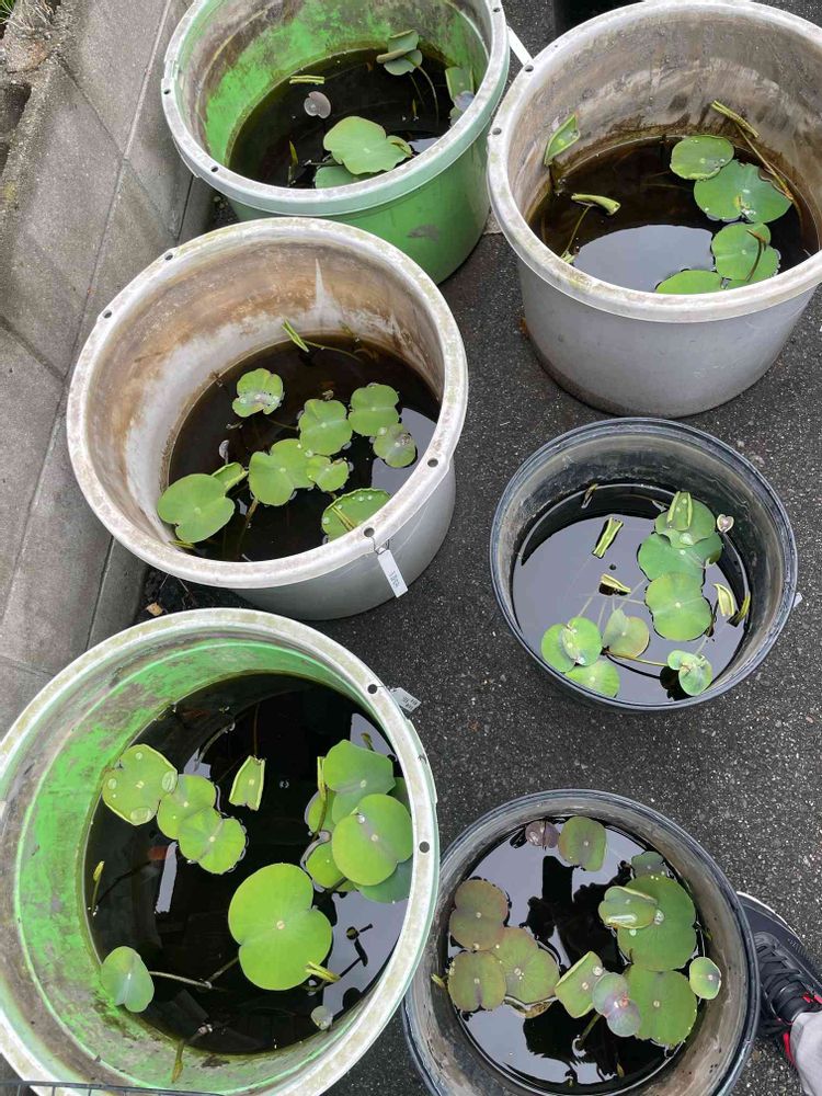 今年は、公園のイベントで、花ハスの蓮根を分けて貰い、ホームセンターの深めの野菜を洗う深くて大きめの容器に腐葉土と赤土半々と、公園で売っている顆粒状の肥料(元肥と追肥別々、小分けになっていて成分不明)で、植えました。腐葉土が入っているからか、水面に沢山黒緑色のものが、浮いて毎日すくって取り除いてましたが、蓮の葉っぱが、増えてきて、浮遊物も減ってきました。ガスも発生してるでしょうね😅ガス抜きと追肥やってみます。どうぞよろしくお願いします😊💖🪷