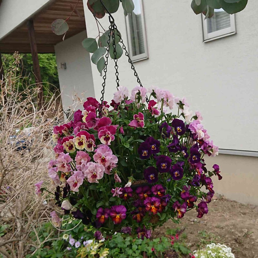 ビオラのハンギングを作ったものがモリモリになりました😊