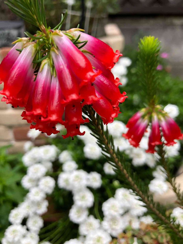 白花のイベリスも満開なので、エリカ鉢を持って行って撮りました📸😊