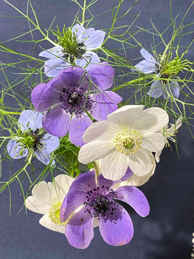 アネモネさんだけでは、ちょっと寂しいので、ニゲラさんにも応援してもらいました😊