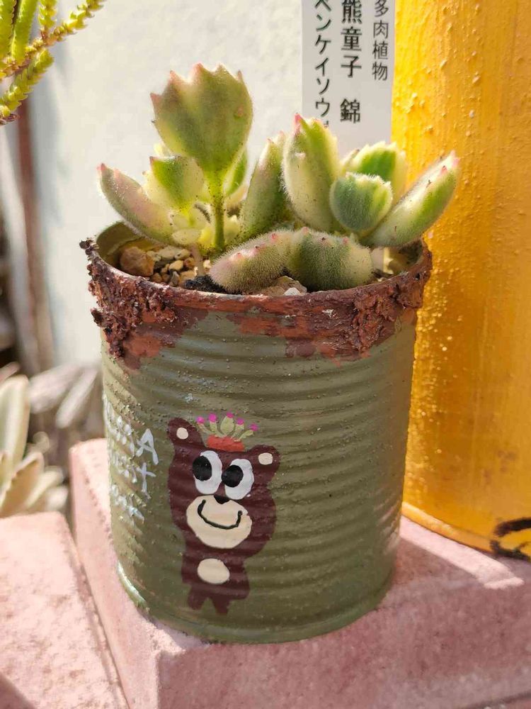 なかなか手に入らないTA29Maさんのリメ缶で飾っていましたが。くまさん繋がりで熊童子さんインしたら可愛くて😊❤️✨