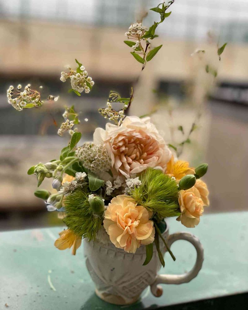 何に生けてもも良い、と習ったので使っていないマグカップで☕️