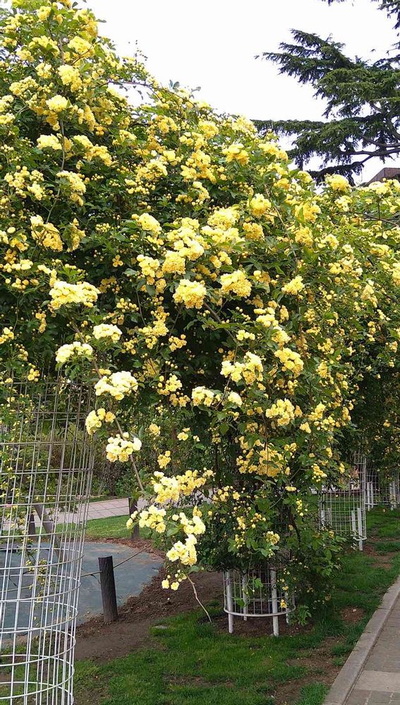 横浜の港の見える丘公園です。モッコウバラは7分咲きかな。まだまだ沢山蕾がありましたよ!🌹