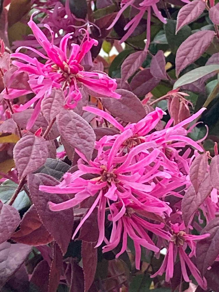 雨に鮮やかなピンク💓葉が赤いものは赤葉紅花トキワマンサクと呼ばれるそうです