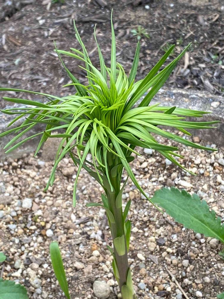 シャンデリアリリープミルム→イトハユリです。去年はある程度育った苗を植えたので、芽吹きから見たのは今年が初めてです😊