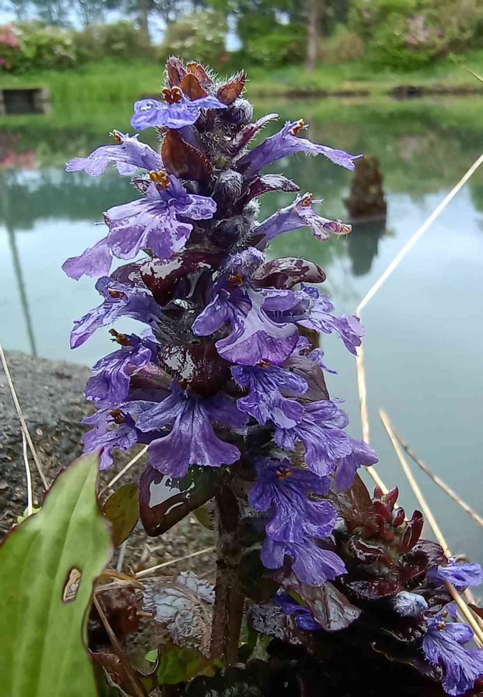 このお花を撮ってから池の周りを歩いたら、アジュガの群生がすごかったです。