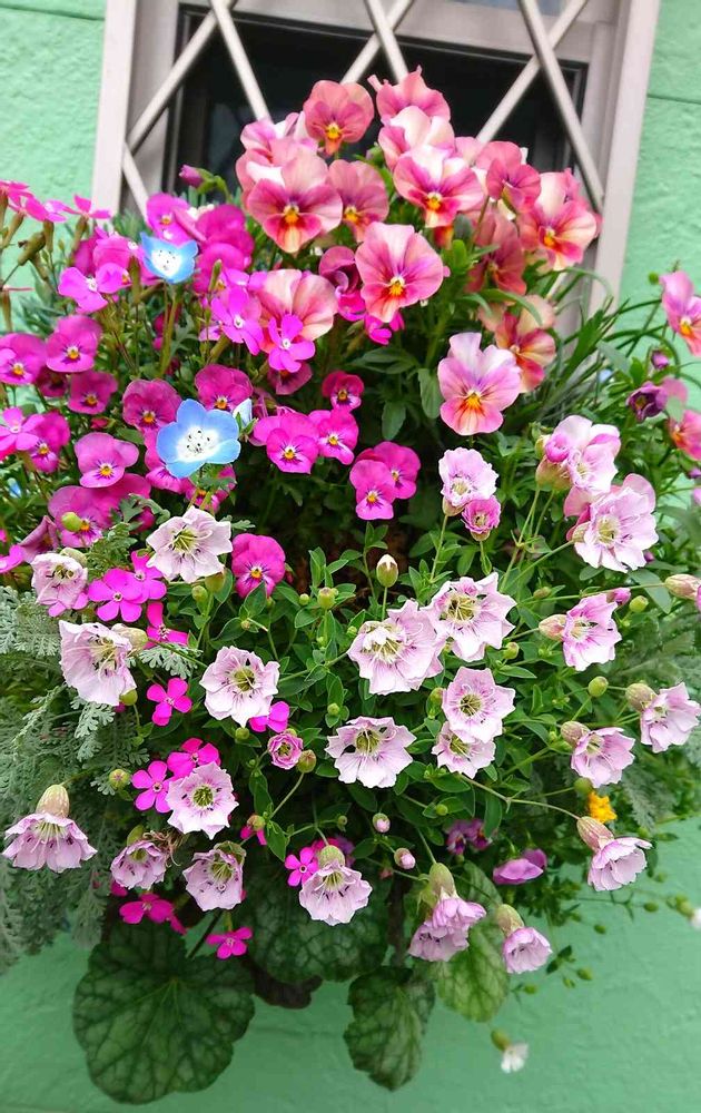ハンギングお上手ですね!見習いたいです。モリモリの可愛いピンクちゃんたちの中に、シルバーレースやヒューケラさんもチラリが素敵で、流石の一言です😳💓