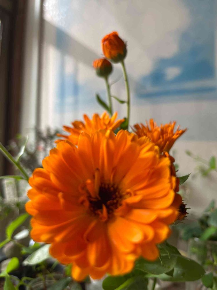自家採取の種から育てたキンセンカが咲き始めました🥰
