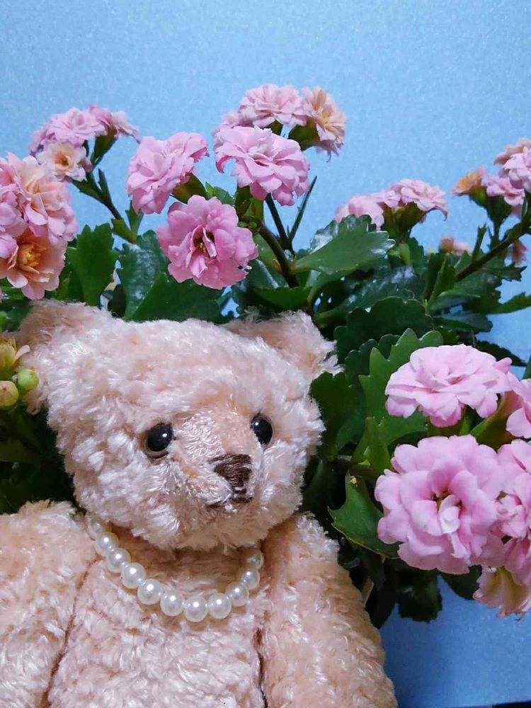 ピンクのクマちゃん真珠のネックレスお似合いで、可愛い😂 ミドさんお手製なんですね(〝⌒∇⌒〝)🙌👌